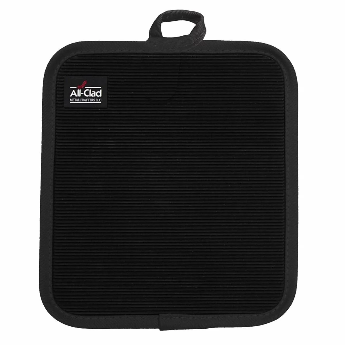 The All-Clad Silicone Pot Holder is padded with 100% cotton and faced with cotton twill for a stain-resistant quality that shows. All-Clad has you covered with this high-functioning kitchen tool. So, take no undue risk in the kitchen and rest those hot pots, pans, and hands on the durable, reliable All-Clad Professional Silicone Pot Holder in Black!