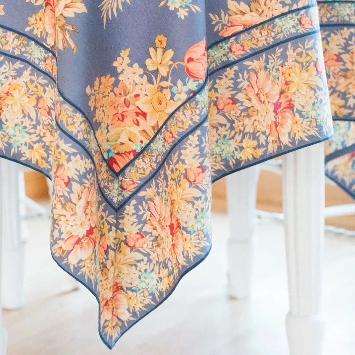 Charm your family and guests with delightfully nostalgic table decor using the April Cornell 54″ x 54″ Charming Breakfast Tablecloth in Vintage Denim. Made of 100% cotton and crafted in India by Cornell Overseas, this tablecloth easily elevates your tabletop whether you’re serving meals on a special occasion or during your everyday family meals. The vibrant yet muted Vintage Denim print features pastel pink and yellow flowers with pops of red against a jean-colored blue background – making a beautiful tabletop statement that is reminiscent of yesteryear.