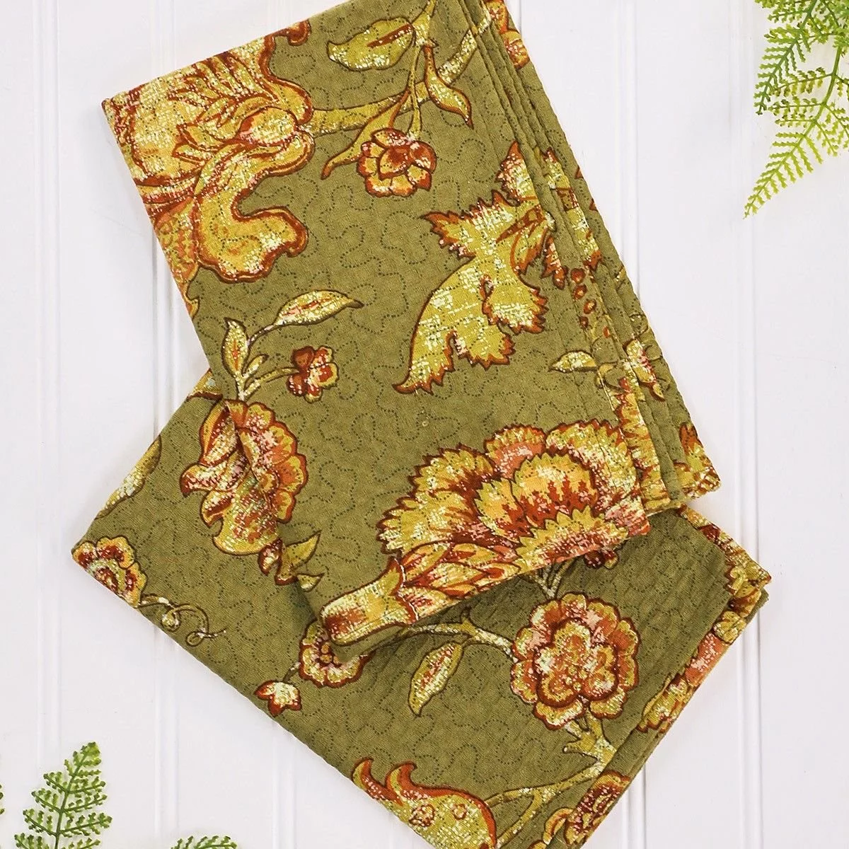 April Cornell Jacobean Garden Tea Towel (Set of 2) – Olive Features: