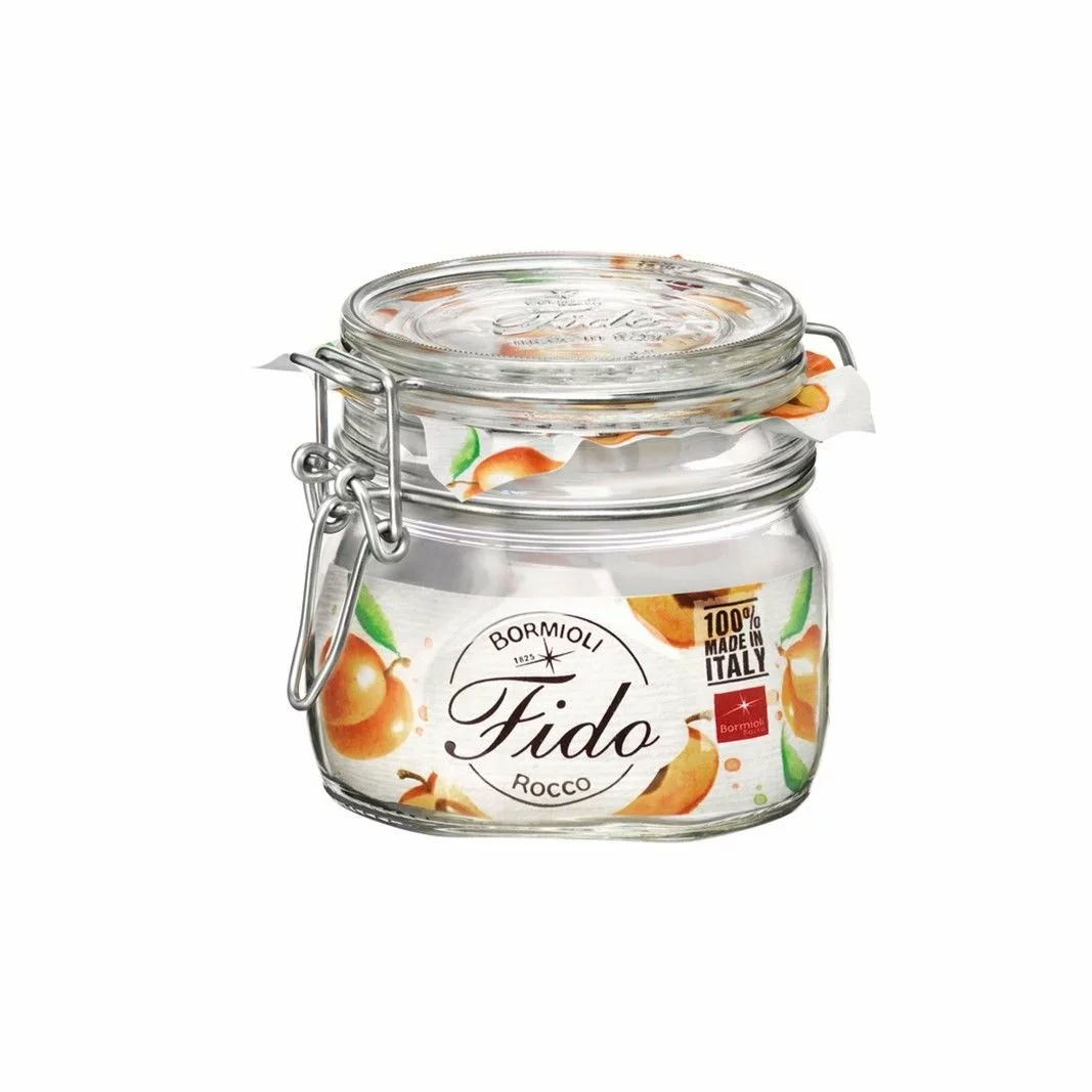 Whether you need air-tight pantry storage for dry goods or a quality glass container for homemade jams and preserves, look no further than Bormioli Rocco’s 0.5L Swing Top Fido Canning Jars. The hermetically sealing swing-top lid and gasket seals out air and moisture and creates a leak-proof seal for storage or travel. The Fido line of swing top glass jars up to the 1.5L capacity can be used for canning and make a beautiful presentation of your favorite preserved foods. These swing-top jars are also great for decorative purposes as well as organizing craft and art supplies.