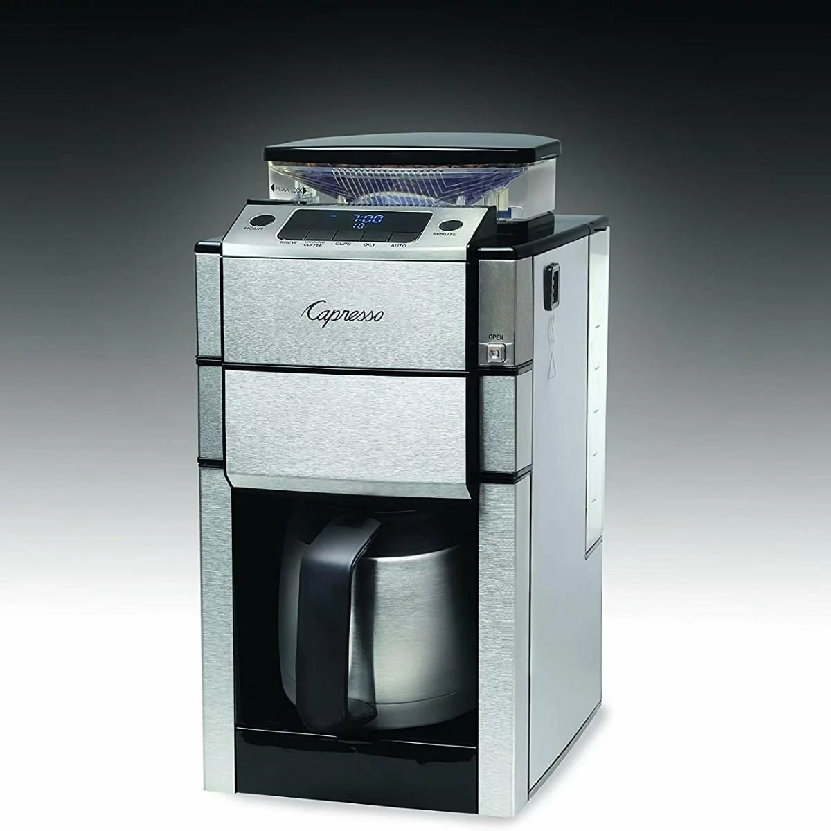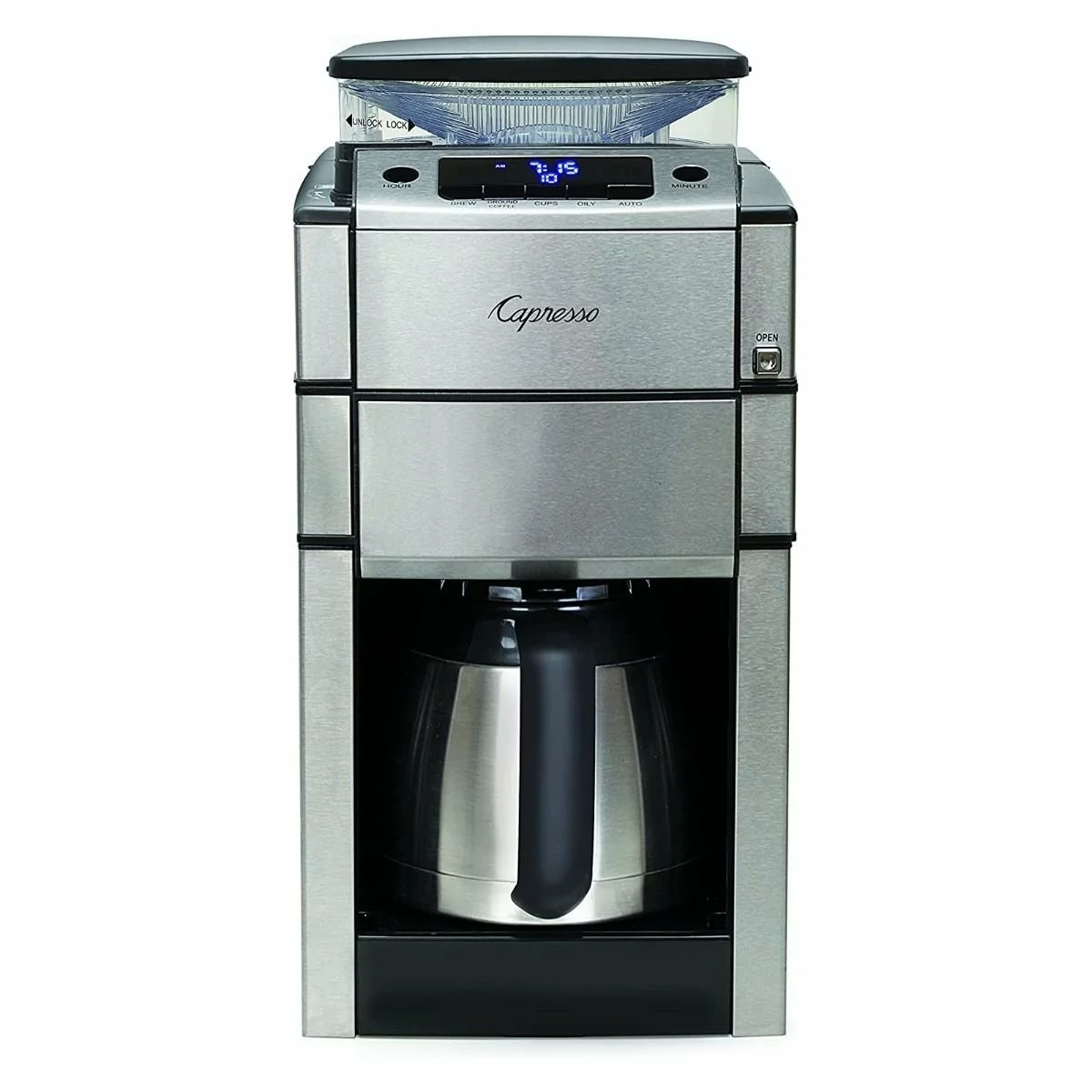 - Stainless steel thermal carafe keeps coffee hot and fresh