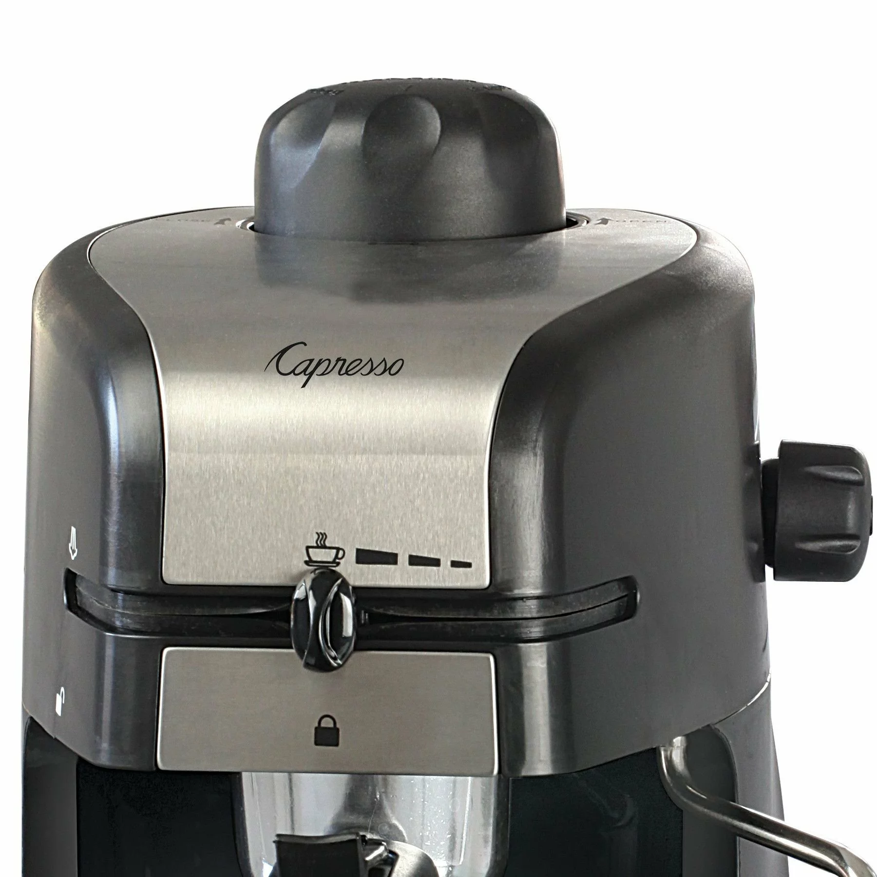 - Coffee/steam selector allows movement from coffee to steaming to adjust coffee strengths