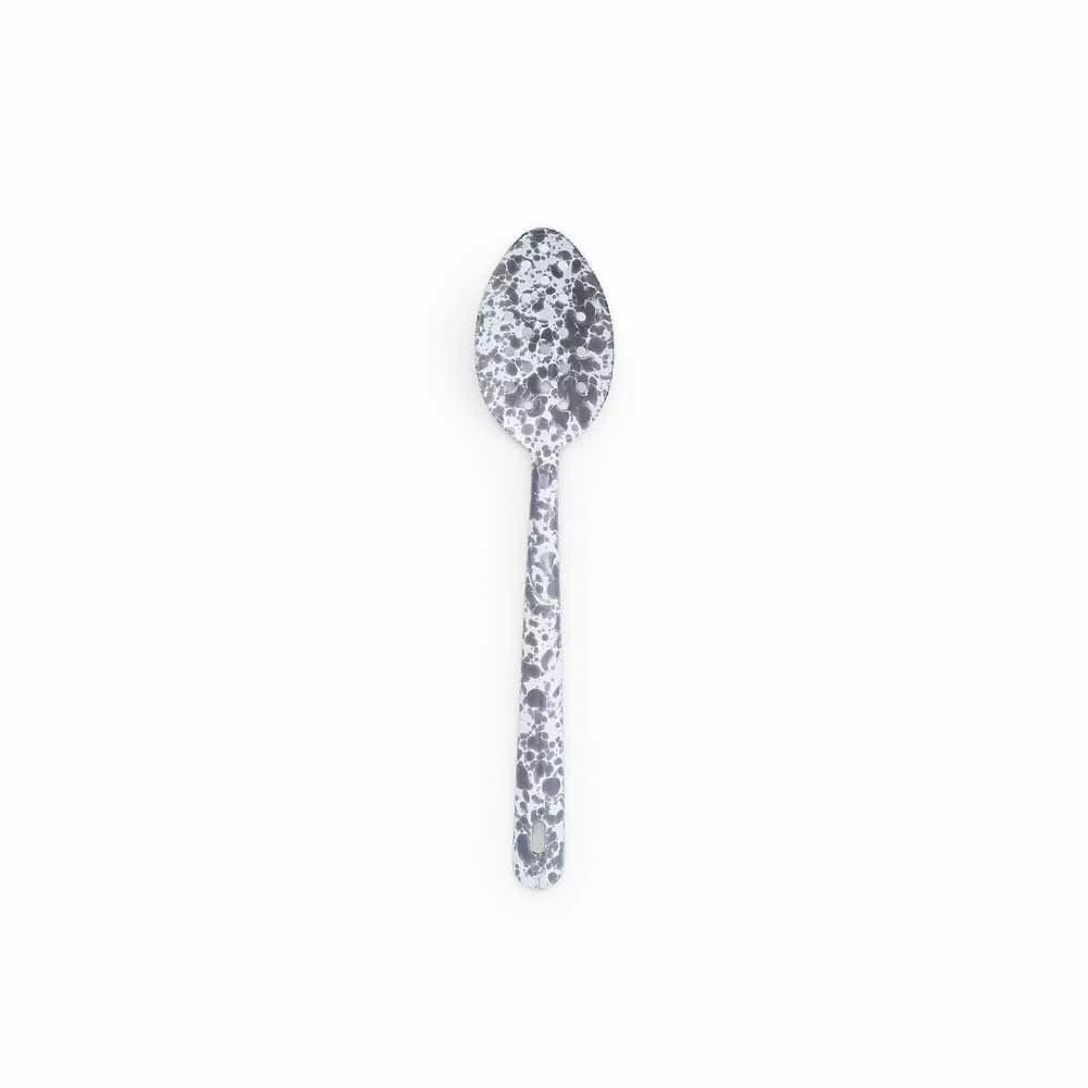 Serve thick stews over a roaring campfire with the Enameled Slotted Spoon in Grey Marble by Crow Canyon. Forged with traditional methods, hundreds of years old, and painted with modern splatter techniques, this grey and white spoon is a timeless addition to your outdoor kitchen. Not one for camping? Enamelware is just as at home in your kitchen as it is your campsite. Enjoy hearty meals served with a splash of color with the Enameled Slotted Spoon from Crow Canyon