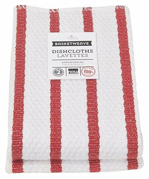 Add this chic Red Stripe Basketweave Dishcloth (Set of 2) by Now Designs by Danica to your kitchen. These dishcloths are constructed of 100% cotton which soaks up splatters and spills quickly! The basketweave texture is specially designed to absorb much more which makes this dishcloth set ideal for quickly and easily wiping down the kitchen or washing up those few dishes in the sink. These dishcloths are machine washable for easy cleanup. The modern Now Designs by Danica Red Stripe Basketweave Dishcloth (Set of 2) will not only add a classic touch to your kitchen, but will also be your go-to for everyday kitchen use!