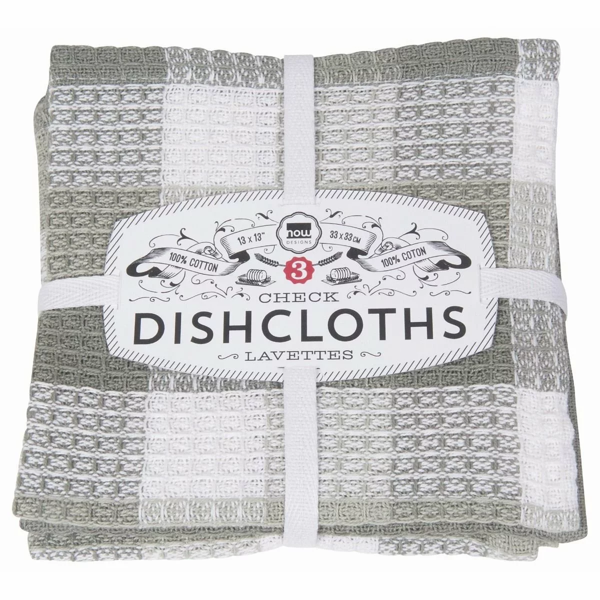Now Designs by Danica Check Dishcloths (Set of 3) – London Gray Features: