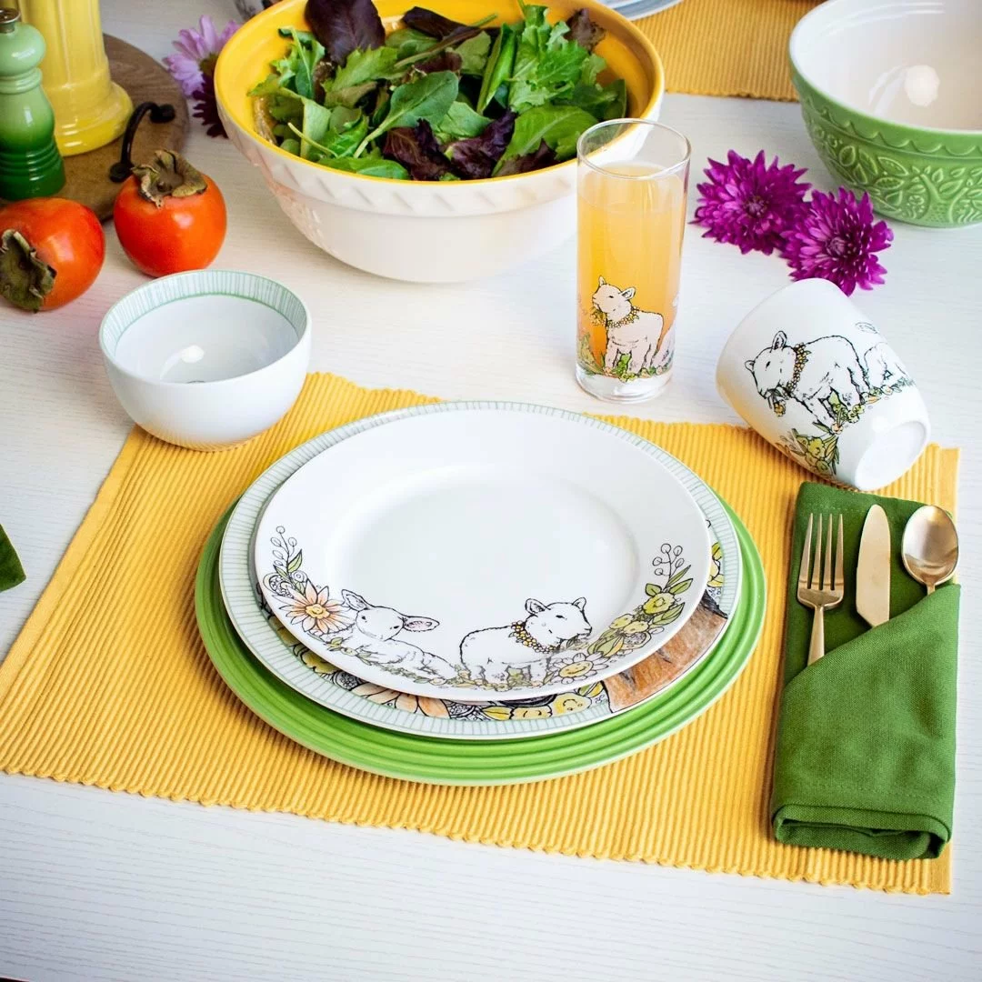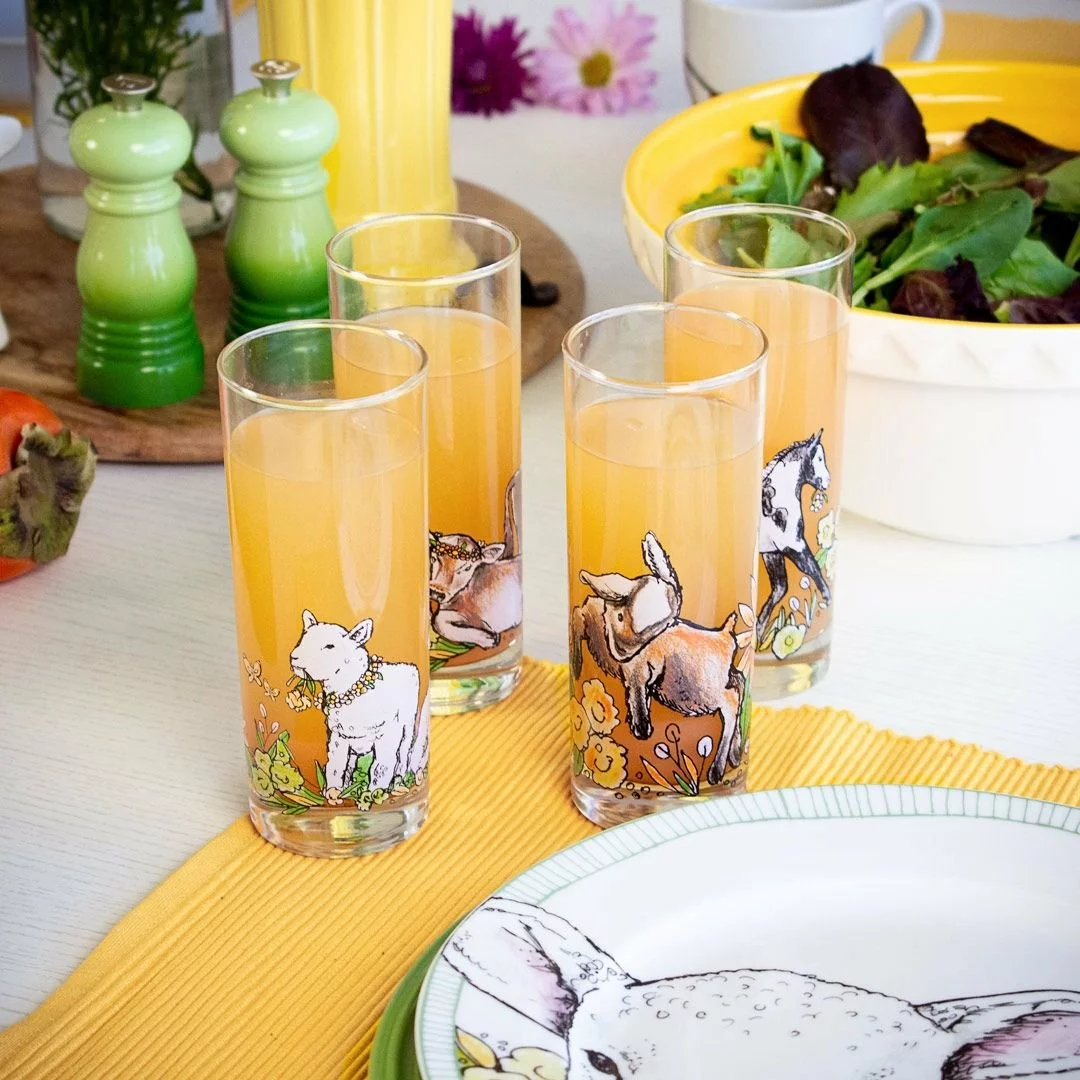 Designed by a pair of local artists exclusively for Everything Kitchens, this playful dinnerware collection features the curious “Caprine Caper” Baby Goat, the lovely “Leaping Lambs” Baby Lamb, the darling “Have a Cow” Jersey Calf, and the charming “Hold Your Baby Horses” Horse Foal. Each piece within the collection is crafted from microwave and dishwasher-safe porcelain or glass and is embellished with unique, hand-drawn illustrations guaranteed to bring a touch of playful fun to your table setting! For harvest dinner parties, springtime brunches, and everyday use, bring the farmyard to your kitchen with the Exclusive Everything Kitchens Barnyard Baby Animals Dinnerware Collection today!