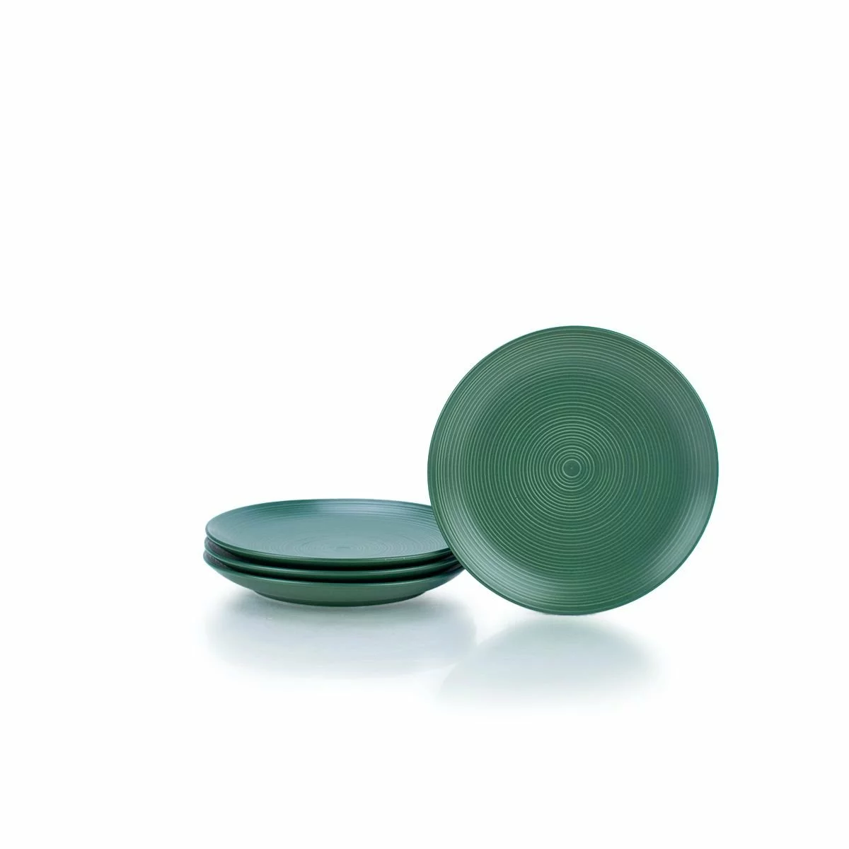 Add a dinnerware collection to your home that will complement any decor style from modern to contemporary with the Everything Kitchens Modern Colorful Neutrals – Rippled 8″ Side Plates (Set of 4) in Green! These stoneware plates will add a playful touch to your dinner table while blending nicely with any occasion, theme, or holiday meal. An embossed concentric circular pattern makes up the diameter of the plate, and a matte finish highlights the texture – resulting in a dimensional, whimsically patterned surface that captures the motion of rippling water. The lush & vibrant forest green glaze can give a soft pop of color with neutral dinnerware and also blends beautifully with other colors within the collection to create a stylistically forward place setting. The aptly sized 8″ diameter allows the plates to easily accommodate side salads, appetizers, or lunch-sized portions of entrees. Microwave-safe for easy reheating and dishwasher-safe for easy cleaning, these plates match their elegance with practicality, allowing for effortlessly elevated dining any day of the week.