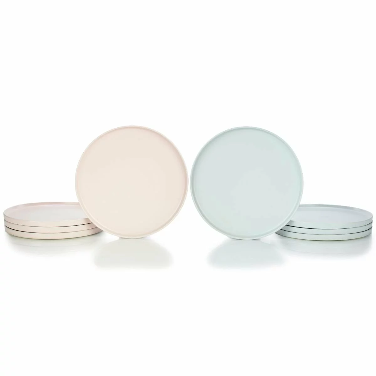 Everything Kitchens Modern Flat 8-Piece Dinner Plate Set – Soft Pink & Stone Gray Features: