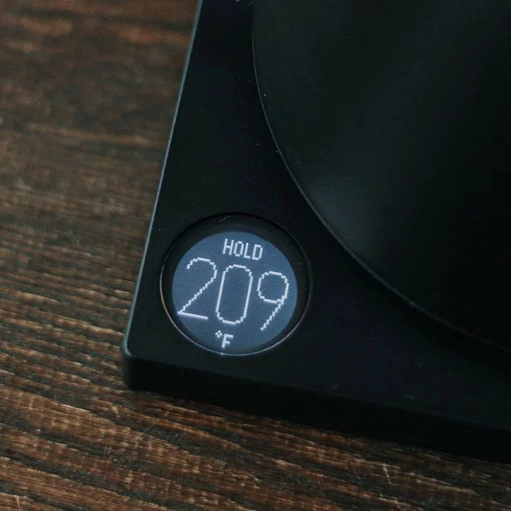 - Displays current kettle temperature and selected temperature setting