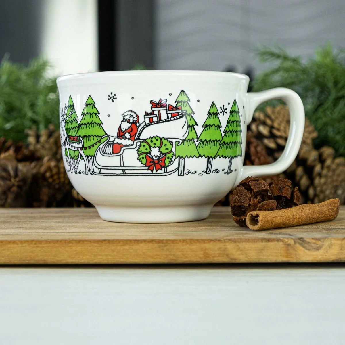 Experience the thrill of Christmas morning & all the warm fuzzy feelings of the holiday season with the exclusive Everything Kitchens Christmas Whimsy Collection – these beautifully decorated pieces can be enjoyed every day of the festive Christmas season or all year round. Indulge yourself & collect every piece in the Christmas Whimsy Collection or mix & match with +15 Fiesta® color options. From rosy-cheeked jolly Saint Nick to an excited “rein-puppy” along with prancing reindeer who watch dancing snowflakes fall around a cozy cabin in the woods, the Shamrock & Scarlet patterns are on traditional Fiesta® White dinnerware & serveware pieces. The pieces in this collection are made of Homer Laughlin’s fully vitrified china, made in the USA. This durable construction is further backed by a 5-year no-chip warranty so you can serve your friends and family with confidence. Expand your Fiesta® collection today and take home an exclusive piece.