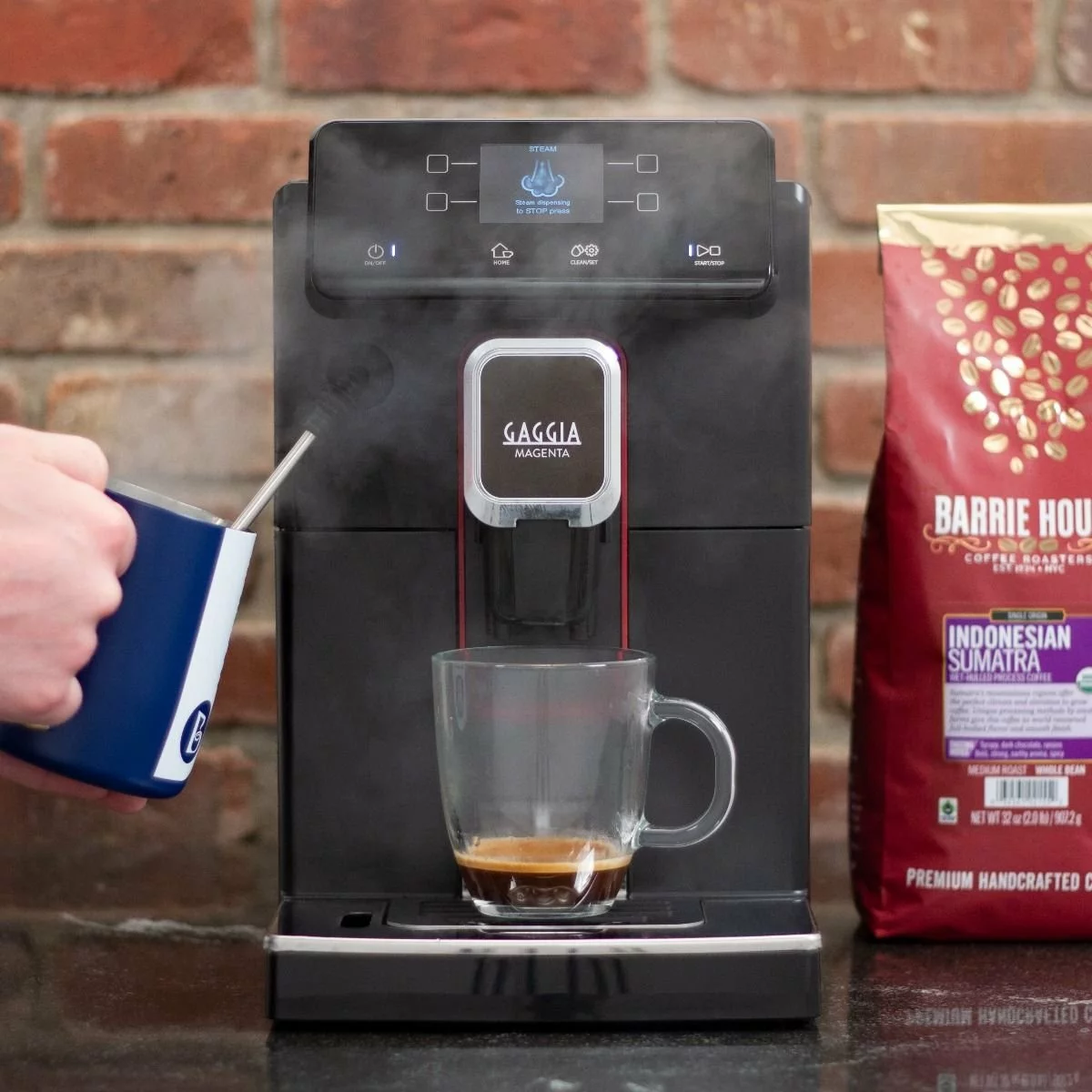 To reflect the sophisticated internal technology, the ABS body is complete with a matte black finish, stainless steel details, and a bright red seam that borders the spout. This machine will add an elevated touch not just to your morning coffee, but to your kitchen as a whole. 100% designed and made in Italy, and backed by a 2-year manufacturer’s warranty, this machine is perfect for any family that shares a passion for coffee. Enjoy a cafe-quality espresso, cappuccino, or latte every day with the Gaggia Magenta Plus Espresso Machine!