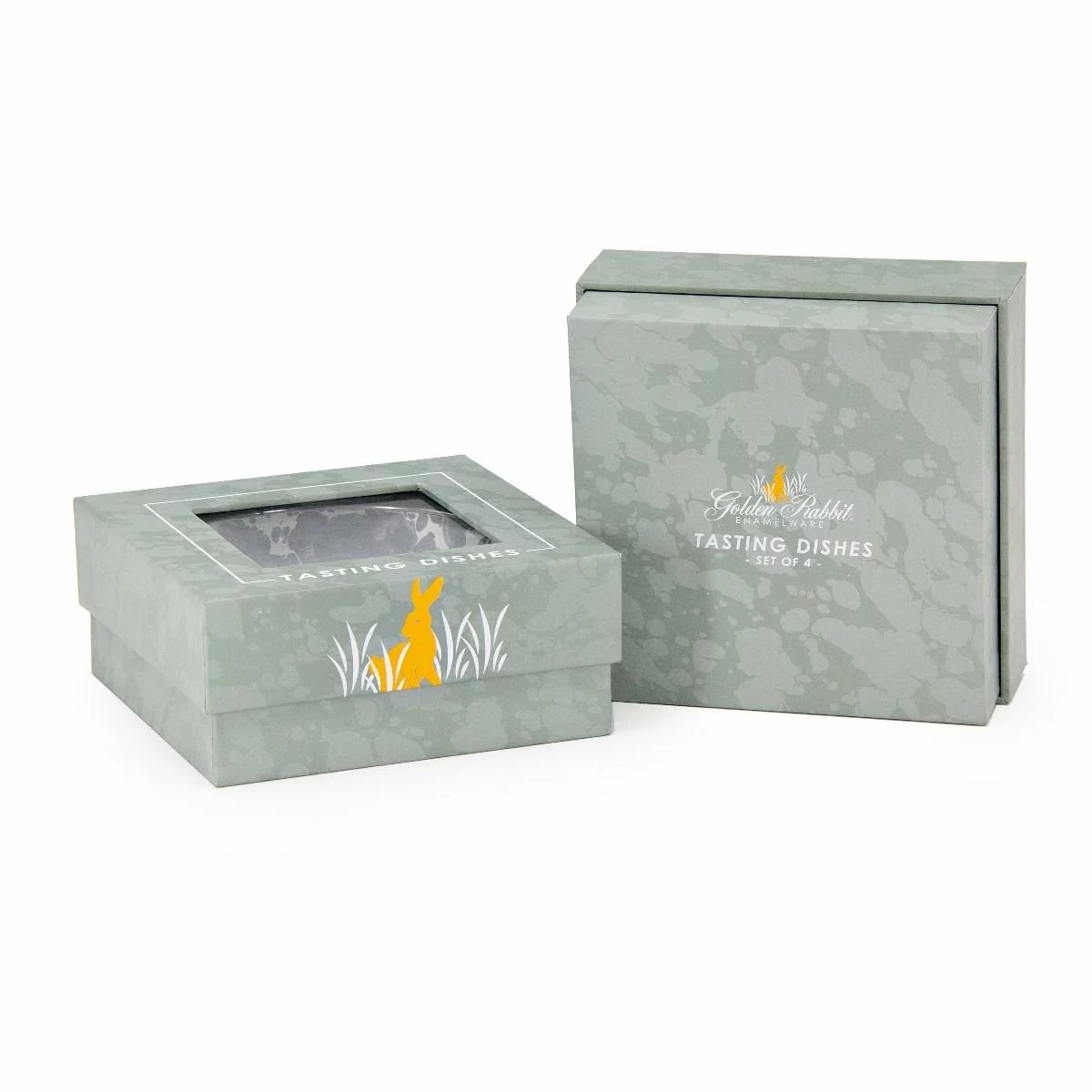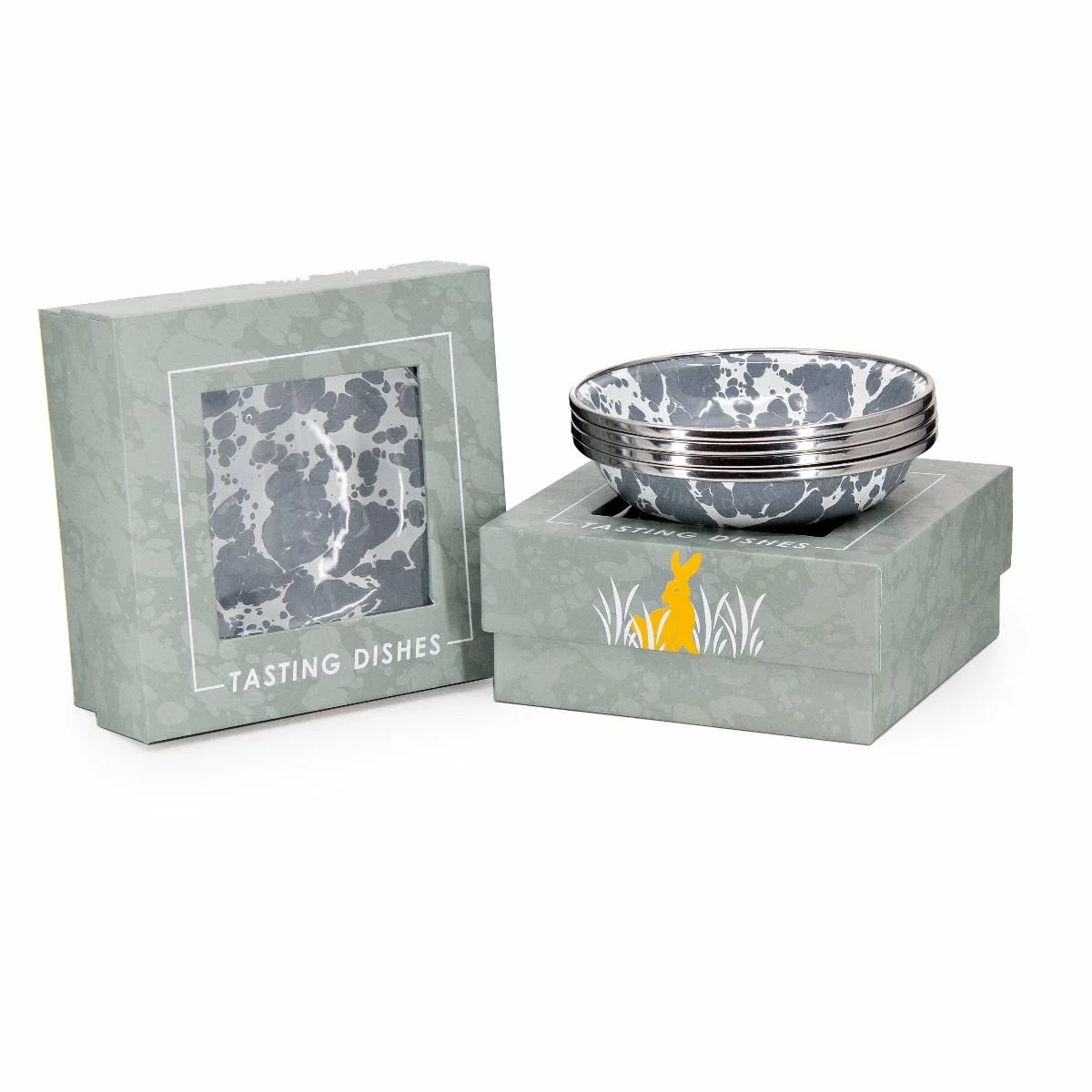 Golden Rabbit Enamelware 4-Piece Tasting Dish Set (Grey Swirl):