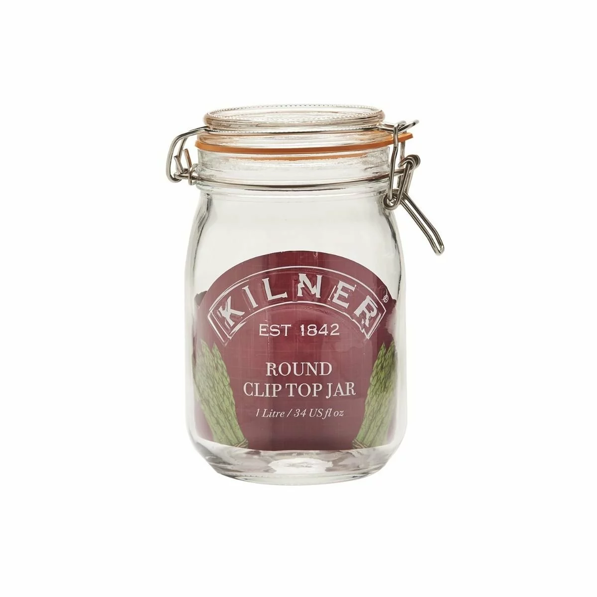 Kilner Clip Top 34-Ounce Round Glass Jar Features: