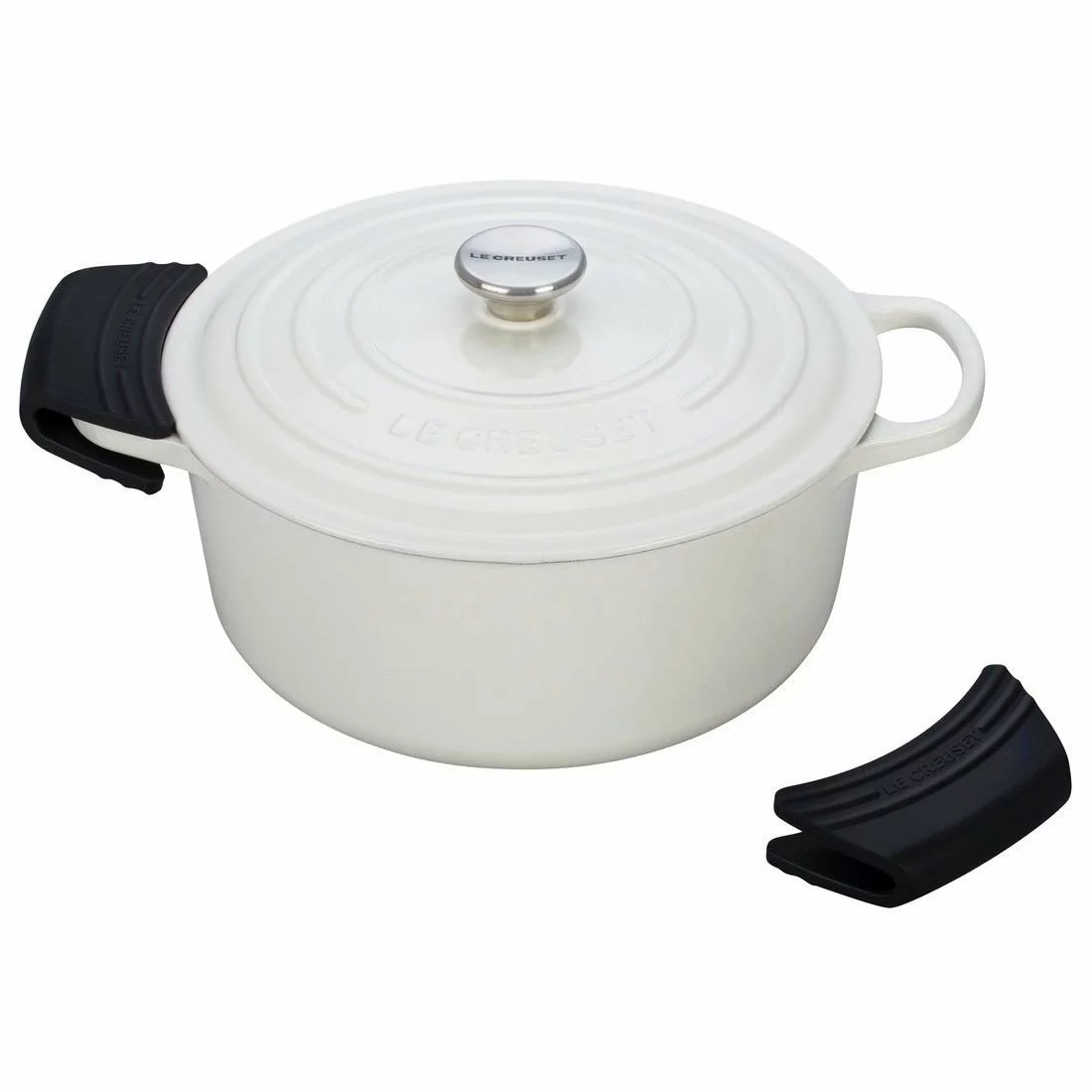 Protect your hands when moving cookware on the stove or carrying a finished meal to the table with these Silicone Handle Grips in Black by Le Creuset. Designed to shield hands from heat while providing a secure grip, these pot handle grips will fit a variety of Le Creuset cookware and bakeware handles, and accommodate many other brands as well. Each 5” x 2.5” silicone handle grip is textured and flexible for optimal gripping of even heavy, fully-loaded Dutch ovens. Like pot holders for your fingers, they’re flexible to accommodate many size handles. Use these handle grips to pull a Heritage or Signature baking dish from the oven, to bring a stock pot of boiling pasta to the sink to drain, to move a Dutch oven to and from the oven, or leave them hanging on the handles of hot pots and dishes on the stove or at the table to protect against accidental burns.