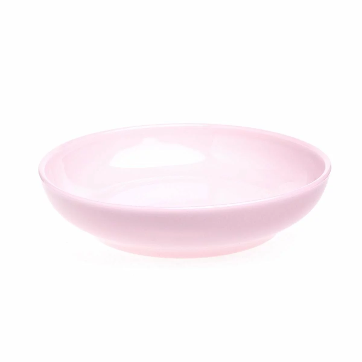 Bring the classic look of hand-pressed art glass to your table with the Mosser Glass line of dinnerware. This 9” bowl in soft Crown Tuscan pink is reminiscent of vintage glassware and sets a contemporary decorative ambiance whether you are serving classic cuisine or modern fare. The bowl’s generous interior (1.75” deep) provides ample room for plating arroz con pollo or braised short ribs or even using as a serving bowl. American-made for 50 years, Mosser Glass uses a perfected manufacturing process to harden, polish, and anneal their heirloom-inspired glassware.
