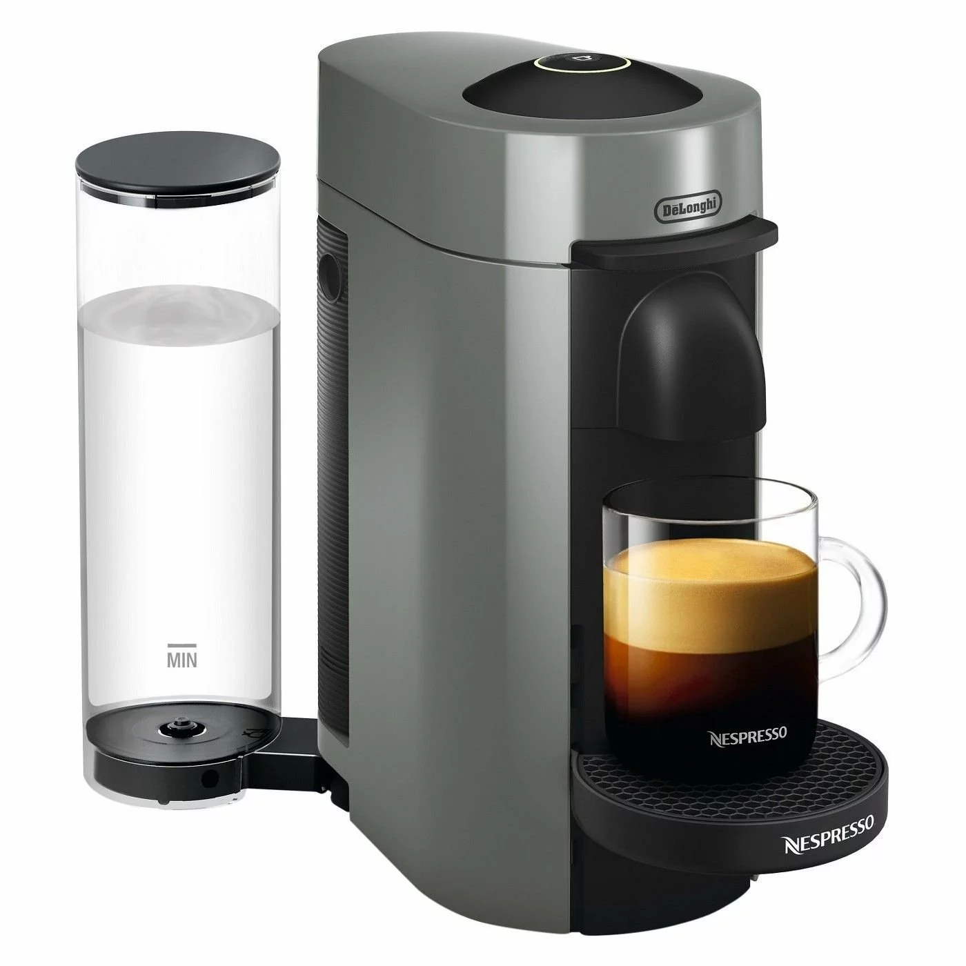 Enjoy café-style quality coffee in your home with the Nespresso Vertuo Plus Coffee and Espresso Machine by De’Longhi Grey. These capsule-driven espresso makers eliminate the guesswork involved in measuring espresso to get the taste and strength you desire, providing a consistently great cup of cappuccino and espresso every time. The VertuoPlus machine conveniently makes two cup sizes, 8 oz. Coffee (large capsule) and 1.35 oz. Espresso (small capsule). Nespresso has innovated a revolutionary brewing system called Centrifusionâ„¢. It spins the dome-shaped capsule around in the machine at up to 7,000 rpm blending the ground coffee and hot water. Nespresso coffee and espresso machines are among the most beautiful and eco-friendly coffee machines on the market.