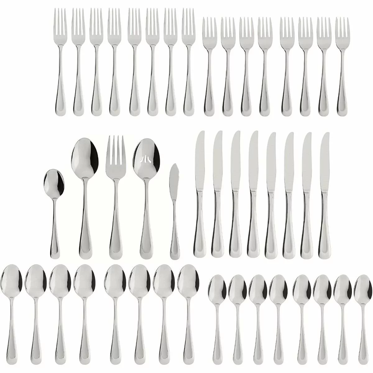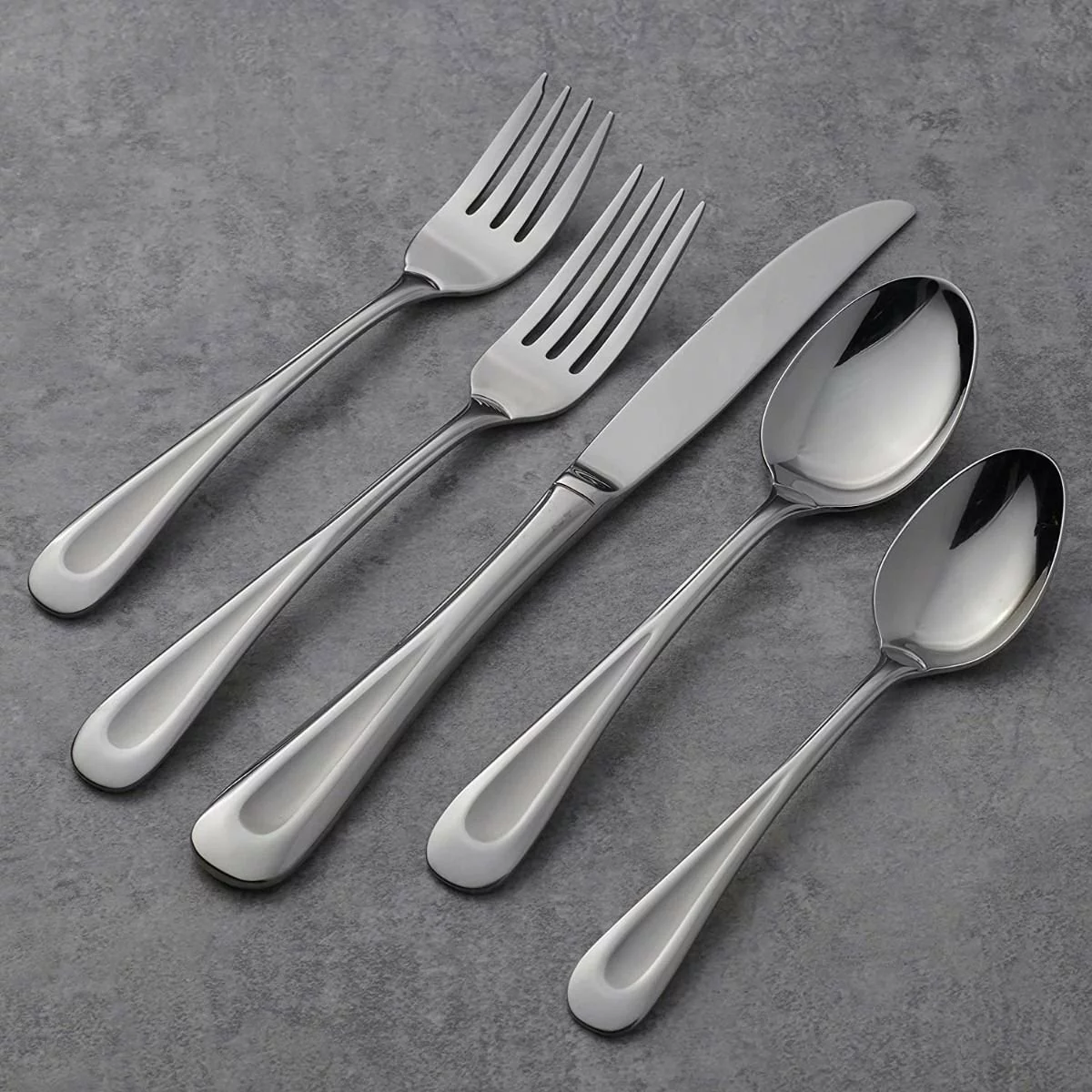Oneida Brushed Satin Stainless Steel 45-Piece Flatware Set (Sand Dune) Features: