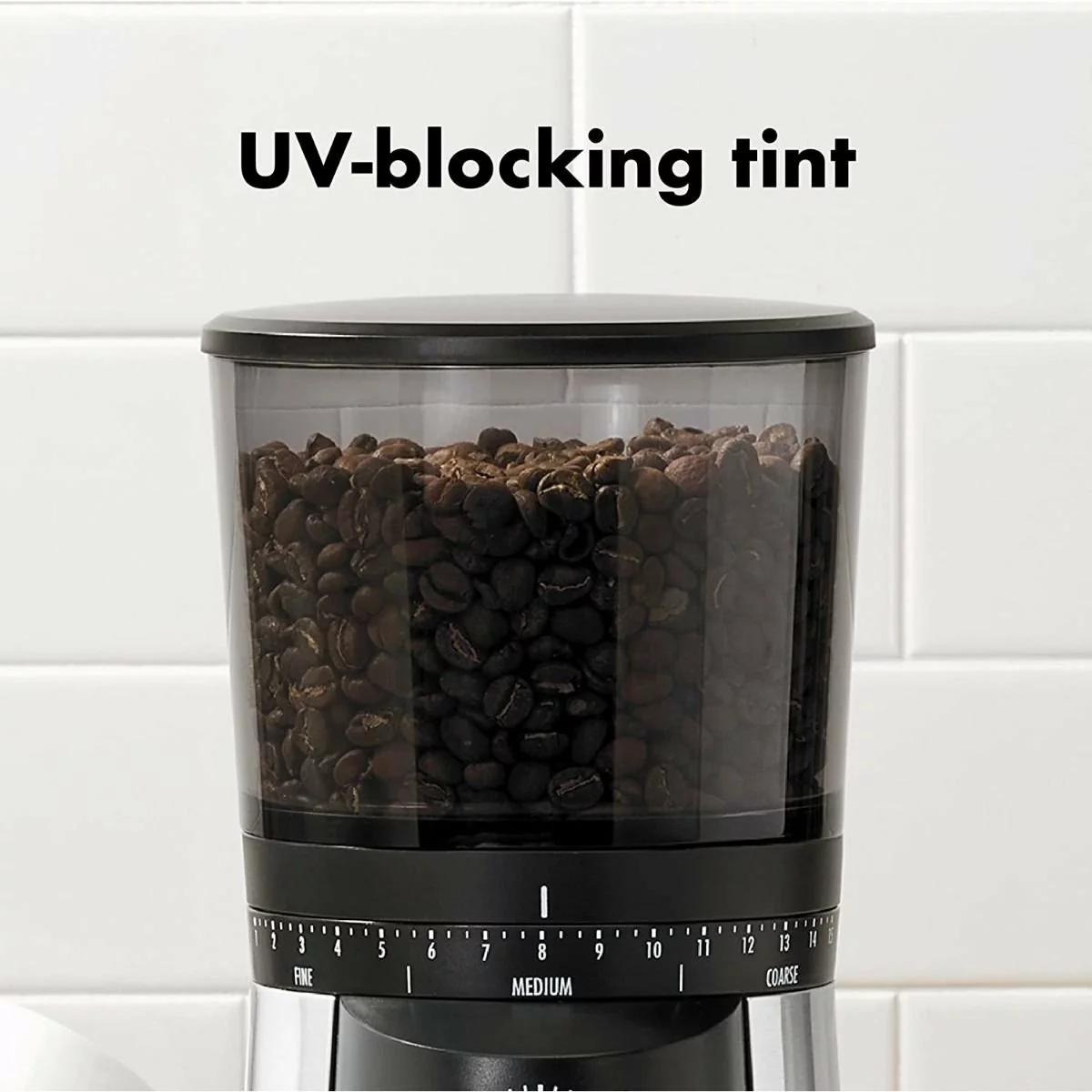 - UV-blocking tint mess-free hopper ensures the freshness of the coffee beans