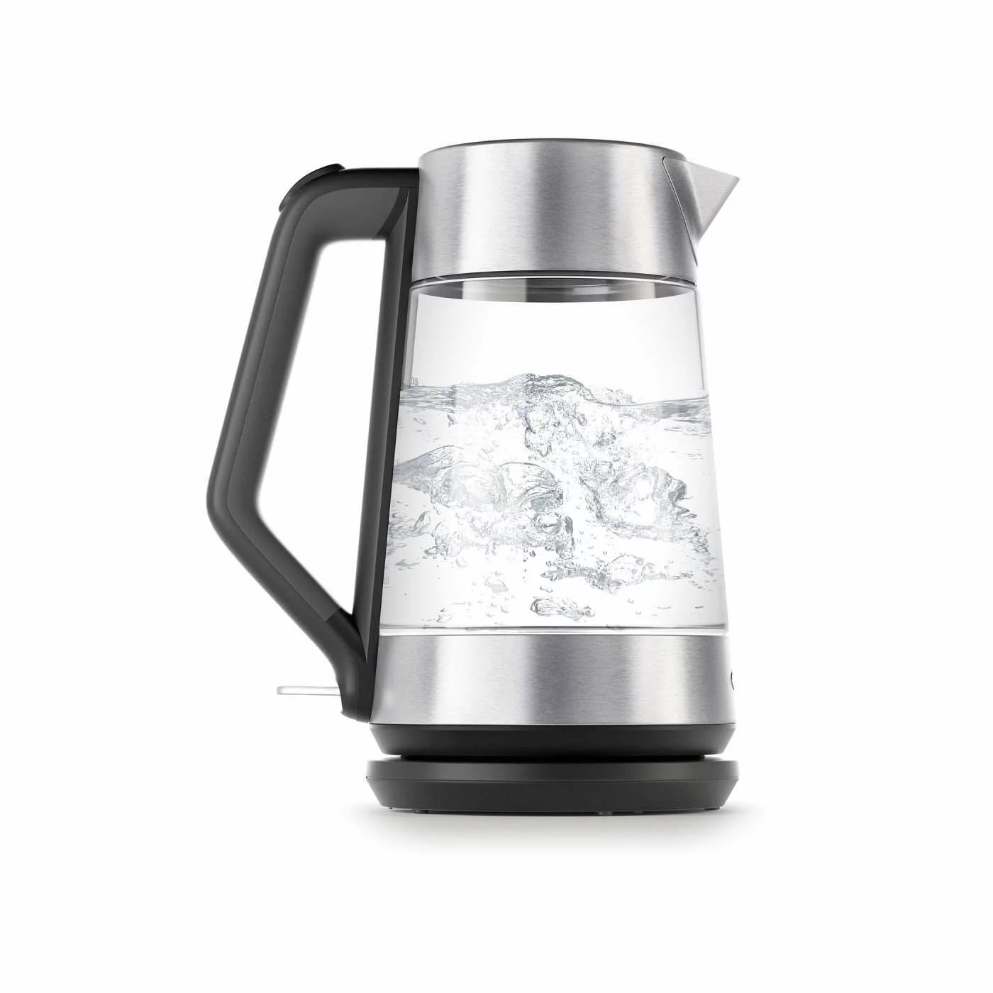Sip a cup of tea with friends or hot cocoa during a cool winter night and bundle up. With the Oxo On Cordless Electric Kettle, you can quickly and efficiently boil hot water for any application. With a 1.75 liter capacity, you can boil generous amounts of water needed for a charming tea party with friends, or instant soups. The 120 volt power system is strong and high performing to quickly heat up your water without waiting around. Made of borosilicate glass and BPA-free, you can comfortably fill your Oxo kettle with ice cold water and reach boiling temperature without shattering due to the shatter resistant thermal shock protection. A removable stainless steel water filter within the kettle captures all calcium and mineral build up for fresh clean boiled water ready to enjoy. With a concealed heating element built into a nifty 360 degree swivel base, you can transport and as an added bonus, place your kettle on table tops without burns due to the heat safe rubber base that remains cool to touch. Forget to turn off your Oxo On Cordless Kettle? No problem! The automatic shut off system intelligently turns off your kettle once the boiling point has been reached. Make a fine Darjeeling tea or instant coffee on the go with the Oxo On Cordless Electric Kettle.