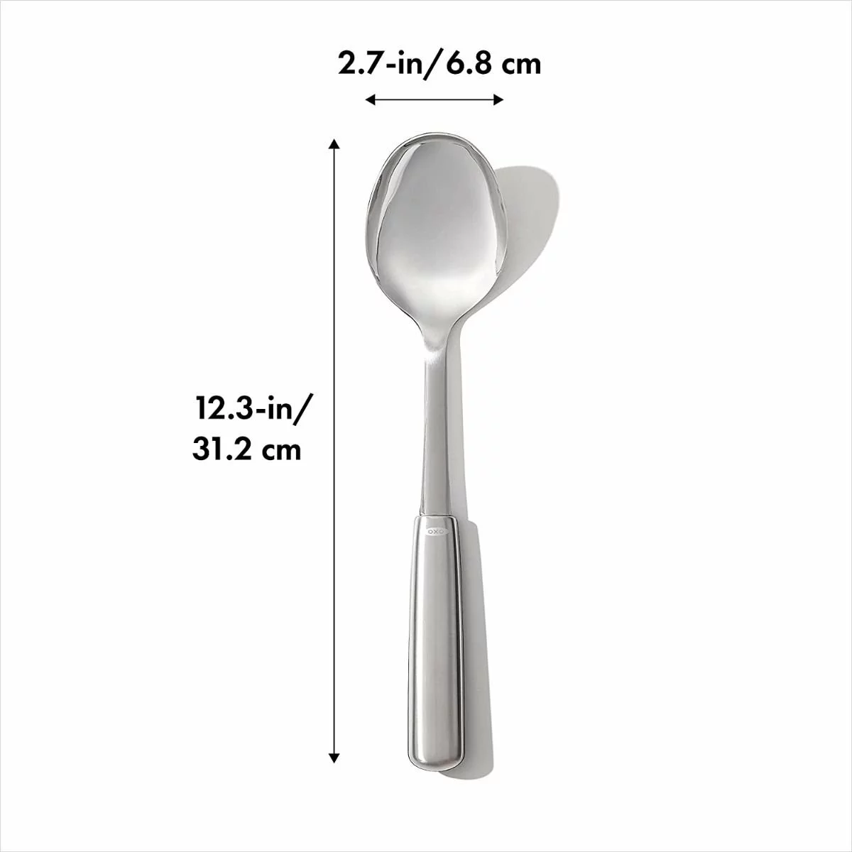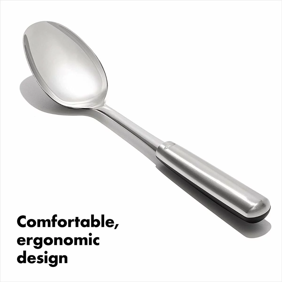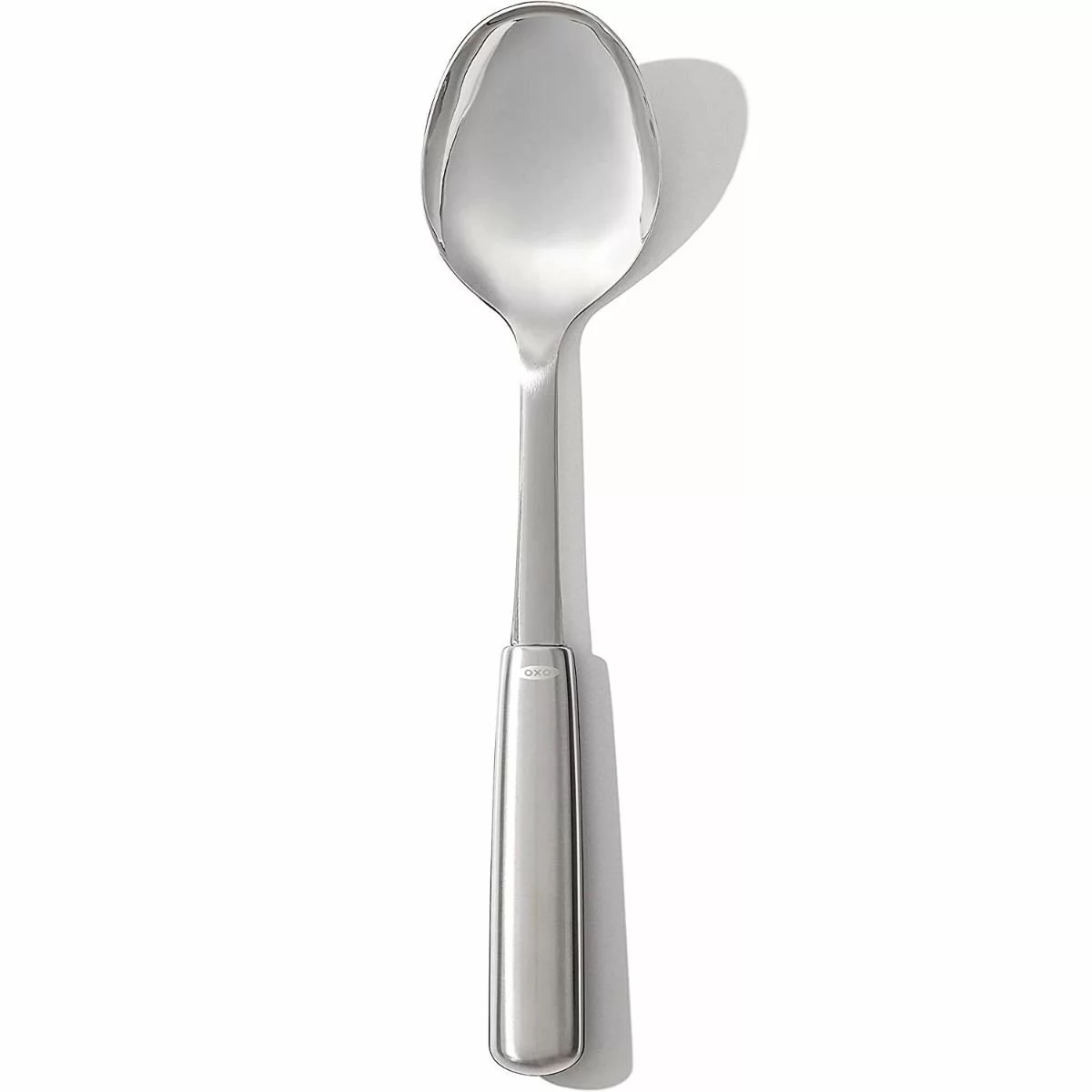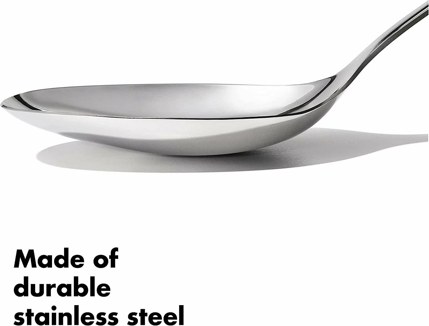 Whether you’re stirring a chili, serving up mac and cheese, or portioning out meatballs, the OXO Steel Cooking Spoon can get the job done. It’s made of stainless steel, which means it’s as durable as it is classic. And it was created with comfort in mind, with non-slip flexible fins along the grip and an ergonomically designed handle. Use it in the kitchen while you work and at the table to serve.