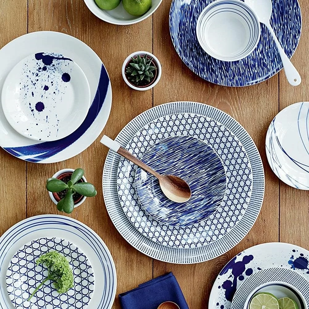 Bring a splash of coastal color to your table setting with the Royal Doulton Pacific Blue Tapas Plates Set! This set includes six plates that are the perfect size for serving salads, sides, appetizers, and desserts to share around the table. Made of high-quality chip-resistant porcelain, each plate features a unique ocean-inspired design in eye-catching blue indigo against a crisp white background that’ll complement any kitchen style. Plus, these plates are stackable when not in use for compact storage and make a great gift for the hostess in your life! Give your serveware collection a little artsy charm with the Royal Doulton Pacific Collection today!