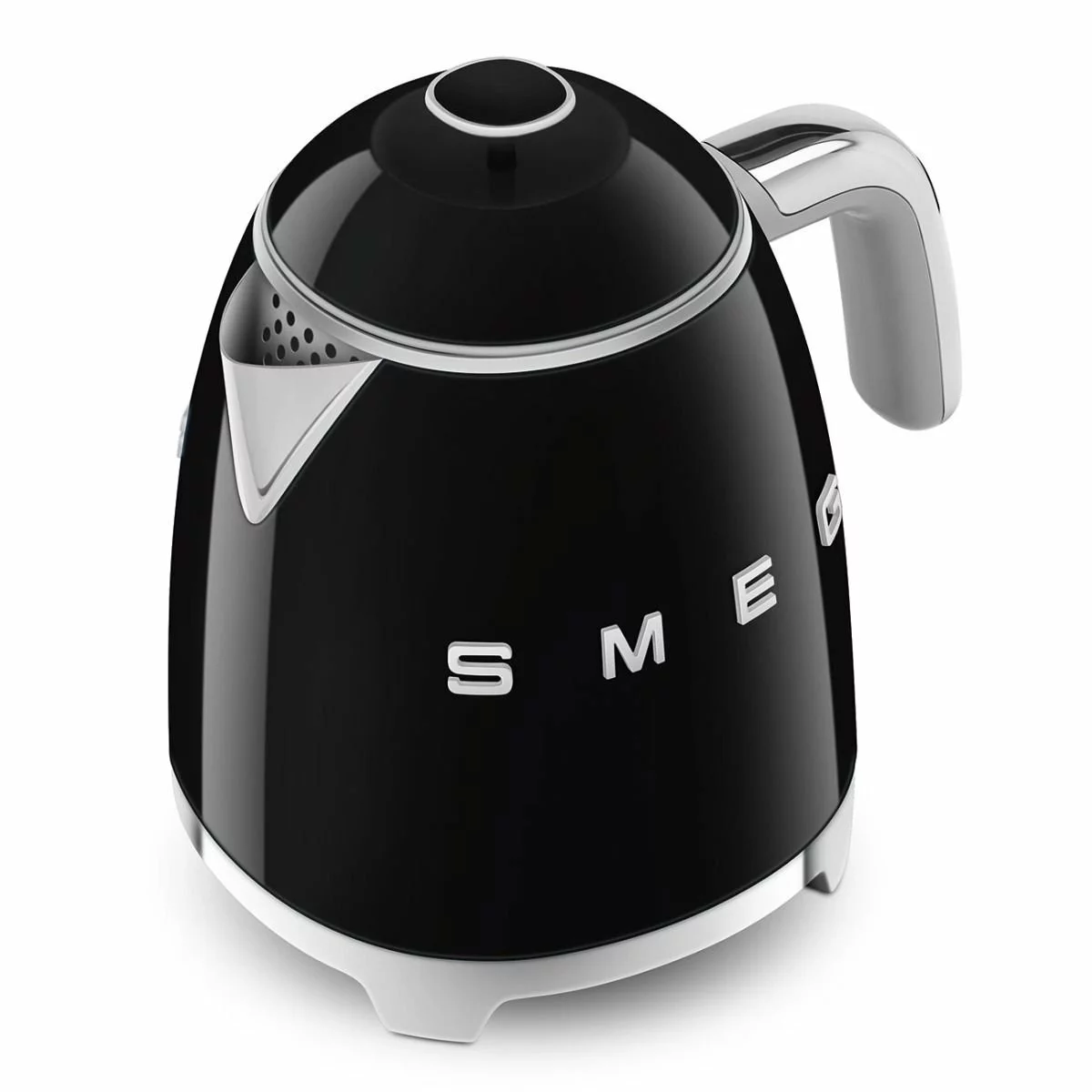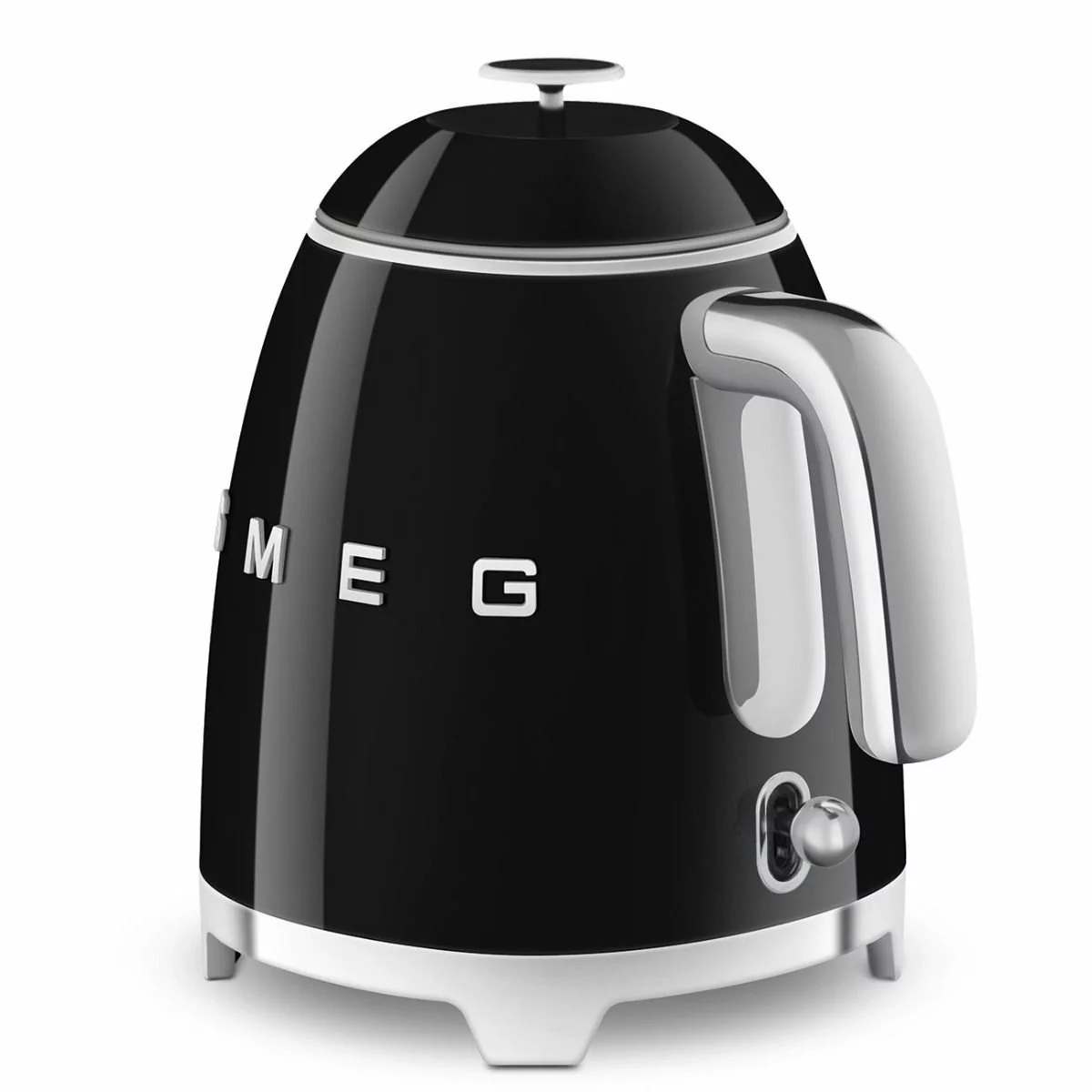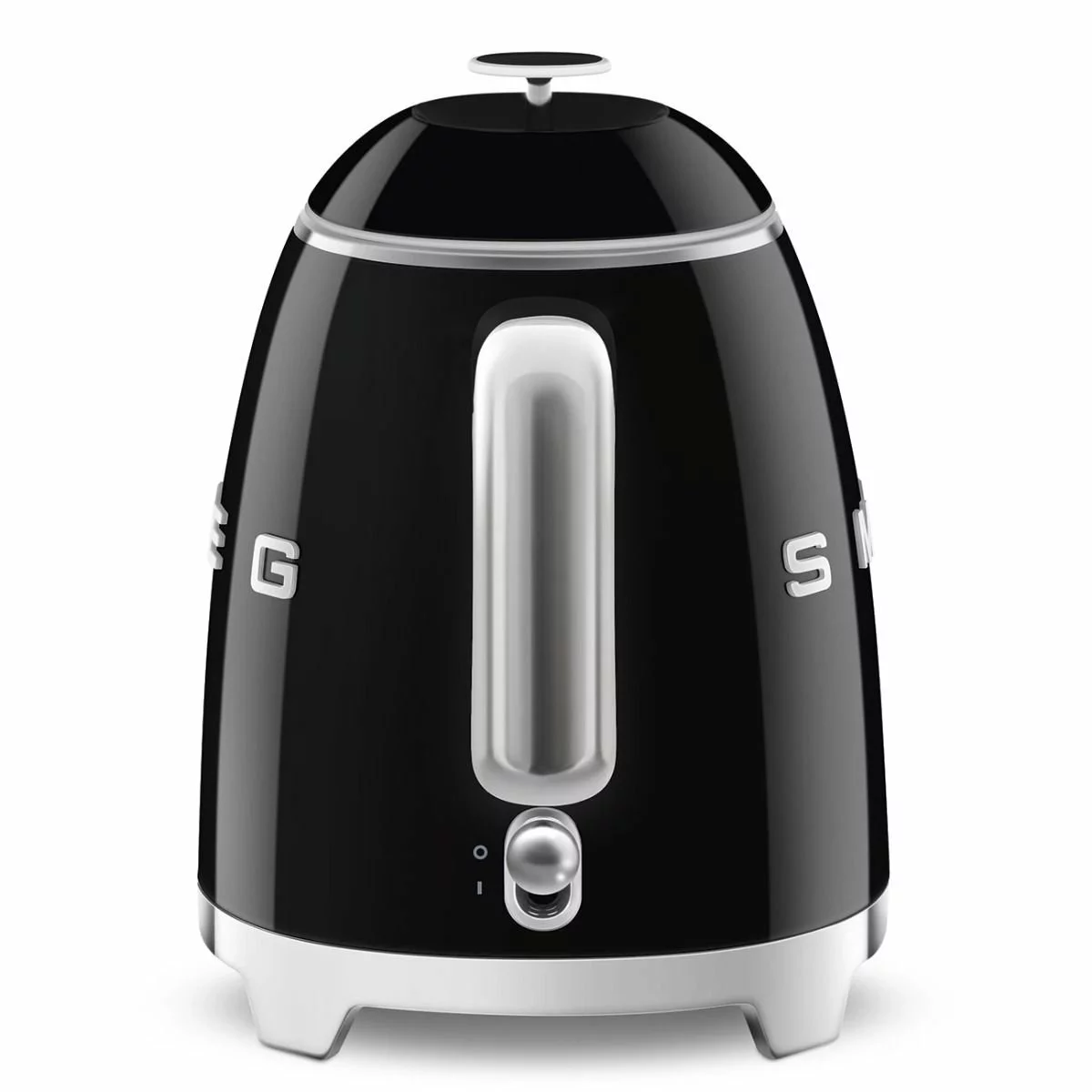 With an iconic 50s retro style and a compact size, you’ll love displaying SMEG’s Mini Electric Kettle in Black in your kitchen or office! This mini electric kettle combines cutting-edge Italian technology with a style reminiscent of Americana, sock hops, & old-fashioned diner restaurants. This efficient mini kettle boils up to 3.3 cups in minutes, so you can enjoy that much-needed cup of tea or pour-over coffee right away. The double-wall stainless steel insulation keeps water hot while its small capacity ensures you boil just the right amount of water you need to prevent water waste. It also has a safety feature that automatically turns the kettle off once the water has reached boiling point, if there’s an insufficient amount of water, or if the body detaches from the base.Â