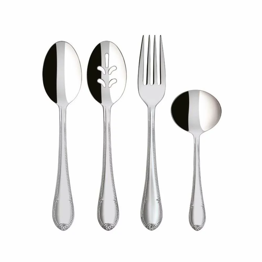 - Includes: 1 Slotted Serving Spoon, 1 Serving Fork, 1 Serving Spoon, 1 Sauce Ladle