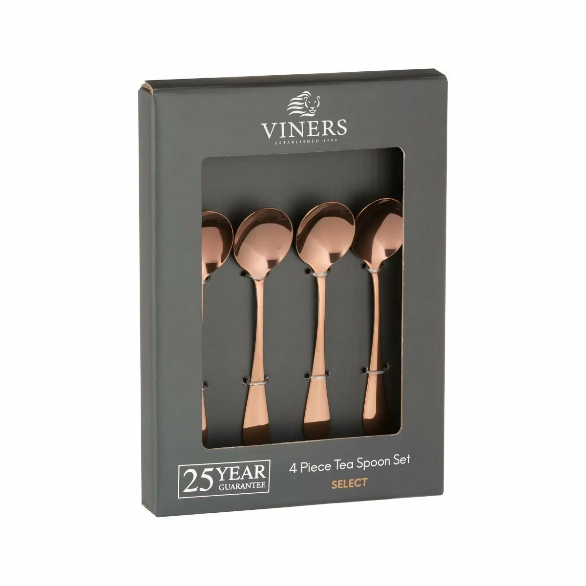 Never miss the mark on your tea service ever again! Start serving up those hot, delicious brews in style! Order your Viners Select 4-Piece Tea Spoon Set in Copper today!